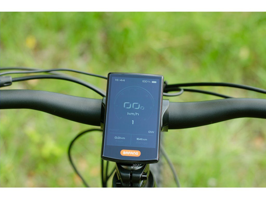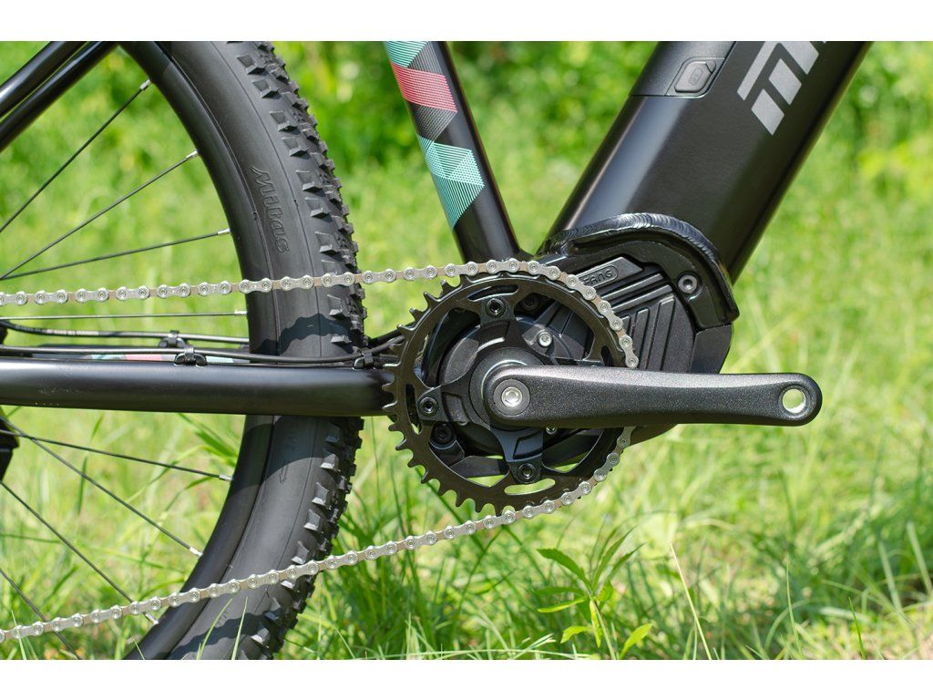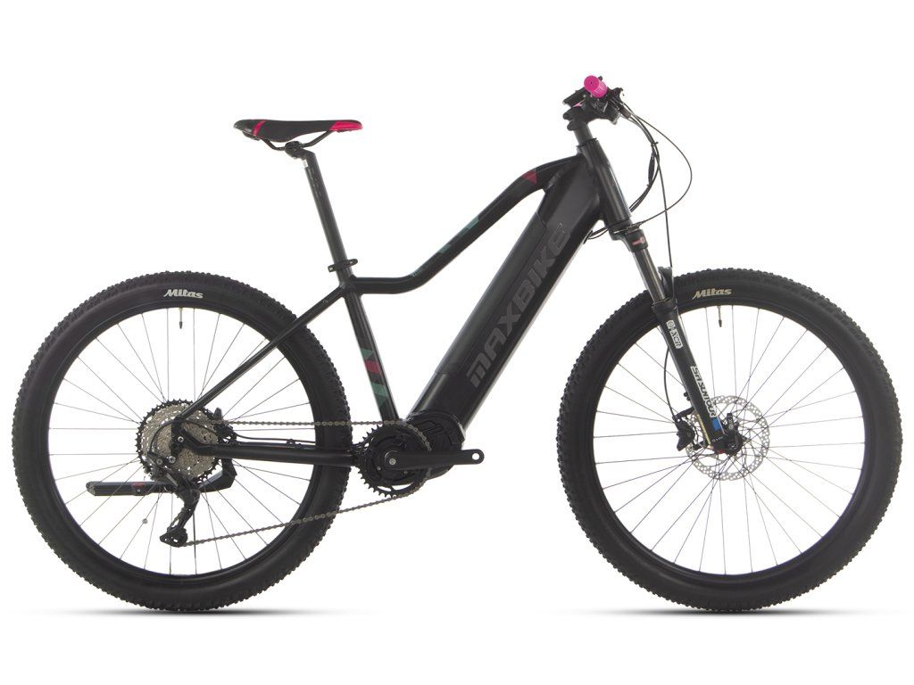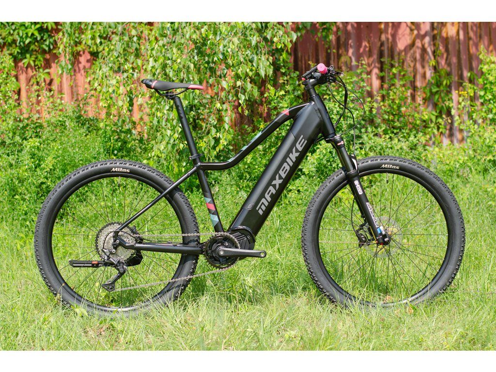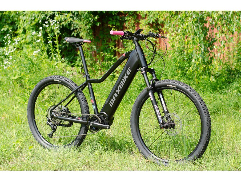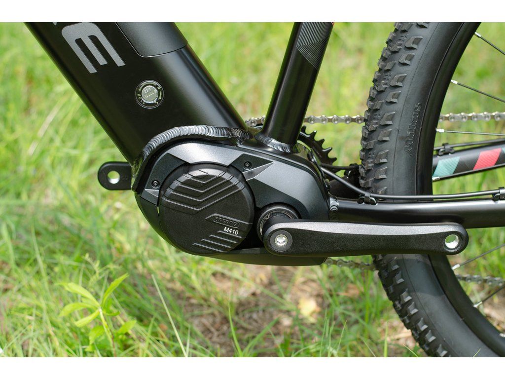 1x10 damski hardtail 27,5" górski rower elektryczny z silnikiem Bafang M410 (250 W, 80 Nm), baterią Aucopo 720 Wh, 20 Ah, 36 V z ogniwami Samsung, widelcem Suntour XCR AIR BOOST RL o skoku 100 mm, manetką Shimano Deore 1x10, tylną przerzutką Shimano Deore RD-M5120 oraz hamulcami Shimano MT400.