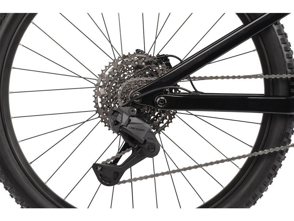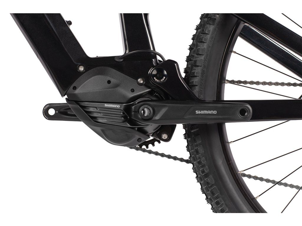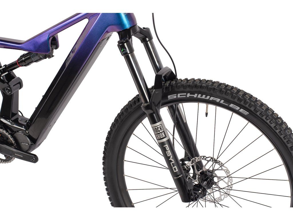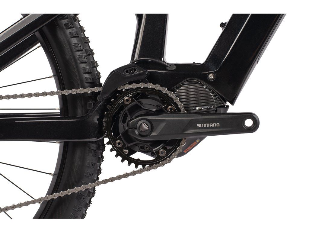 1x11 full 29" górski rower elektryczny z karbonową ramą, silnikiem Shimano EP801 (250 W, do 85 Nm) oraz napędem Shimano Deore 1x11 z funkcjami Autoshift i Freeshift, bateria Shimano 630 Wh, 17,5 Ah, skoki zawieszenia 160/150 mm, amortyzowany widelec RockShox PSYLO Silver RC, amortyzator tylny RockShox Deluxe Select R, przerzutka Shimano Deore RDM6260L Di2, hamulce Shimano MT420 z czterotłoczkowymi zaciskami i tarczami 180 mm, teleskopowa sztyca TranzX JD-YS15J, skok 125 mm, siodło DDK-VP82616 VM FIT, kierownica RITCHEY COMP ATB, 31,8/760 mm / +20 mm rise, mostek RITCHEY COMP 4-AXIS.