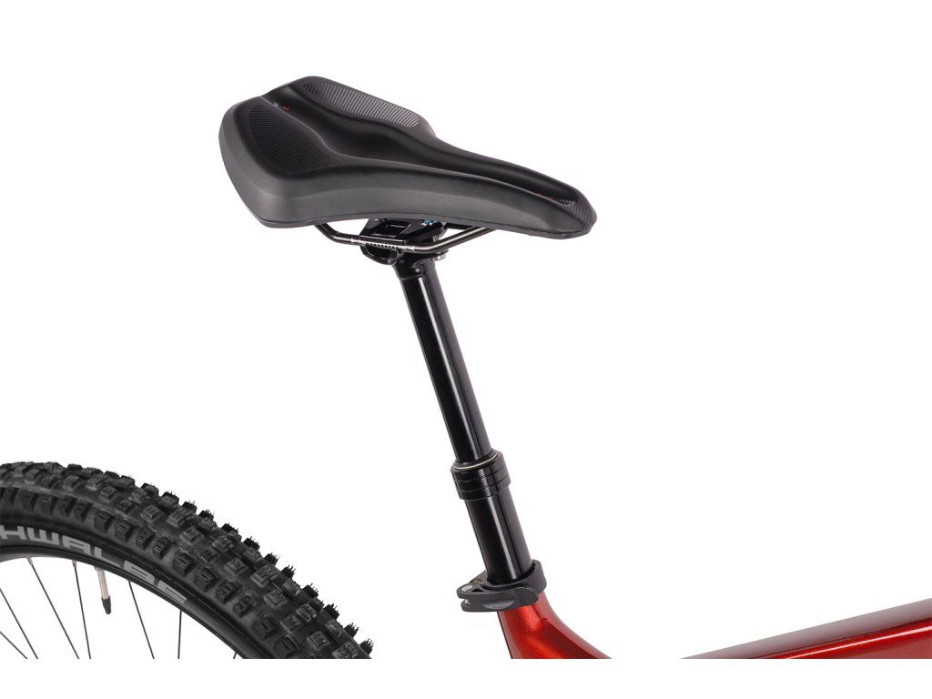 Szeroka kierownica trailowa RITCHEY COMP ATB (760 mm, +20 mm rise) w połączeniu z mostkiem RITCHEY COMP 4-AXIS zapewnia natychmiastową reakcję na ruchy kierownicą i pełną kontrolę. Teleskopowa sztyca TranzX (125 mm) umożliwia szybkie dopasowanie wysokości siodła do terenu, zwiększając stabilność w technicznych fragmentach trasy. Komfort wspiera sportowe siodło DDK FIT, a koła z obręczami Ryde Disc35 i oponami Schwalbe Nobby Nic gwarantują przyczepność na każdym podłożu.