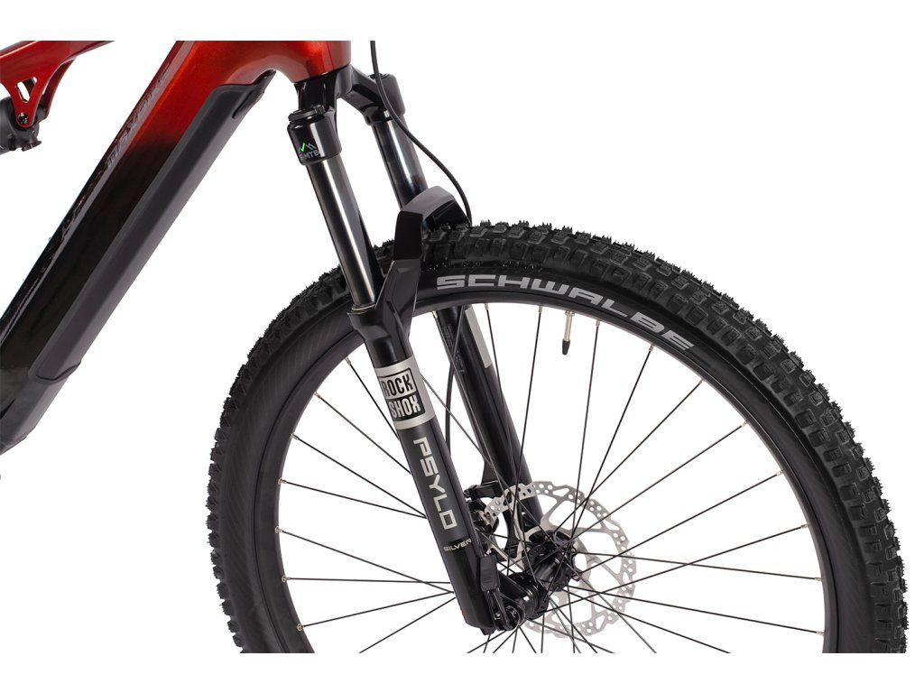 1x11 full 29" górski rower elektryczny z silnikiem Shimano EP801 (250 W, do 85 Nm), baterią Shimano 630 Wh, 17,5 Ah, skokami zawieszenia 140/140 mm, amortyzowanym widelcem RockShox PSYLO Silver RC oraz amortyzatorem tylnym RockShox Deluxe Select R. Napęd Shimano CUES SL-U6000 1x11 z przerzutką Shimano CUES RD-U6000, teleskopowa sztyca TranzX JD-YS15J o skoku 125 mm, siodło DDK-VP82616 VM FIT, kierownica RITCHEY COMP ATB (31,8 / 760 mm / +20 mm rise) oraz mostek RITCHEY COMP 4-AXIS.