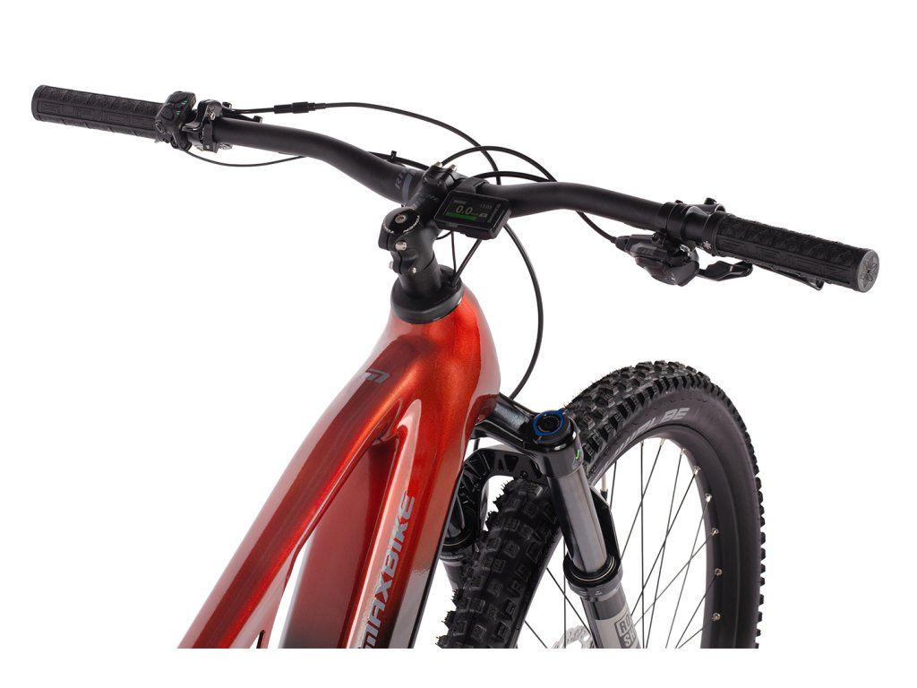 MAXBIKE Maya to wydajny trailowy rower elektryczny dla prawdziwych pasjonatów, którzy kochają dynamiczną jazdę, techniczne trasy i terenowe wyzwania. Dzięki pełnemu zawieszeniu o skokach 140/140 mm, wysokiej klasy amortyzacji RockShox oraz zaawansowanemu systemowi Shimano EP8 model ten jest gotowy na wszystko – od stromych podjazdów po wymagające zjazdy. Maya zapewnia czystą radość z jazdy, maksymalną kontrolę i bezkompromisowe osiągi.