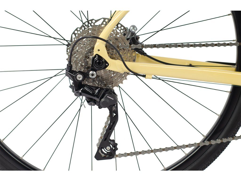 Rama została zaprojektowana z myślą o bardziej wyprostowanej pozycji jazdy, która nie jest tak agresywna jak w rowerze szosowym. Nadal jednak oferuje świetny transfer mocy z większym naciskiem na komfort – zarówno podczas dłuższych wypraw, jak i szybkiej jazdy po szutrowych drogach. - Hydrauliczna grupa Shimano GRX400 2x10
