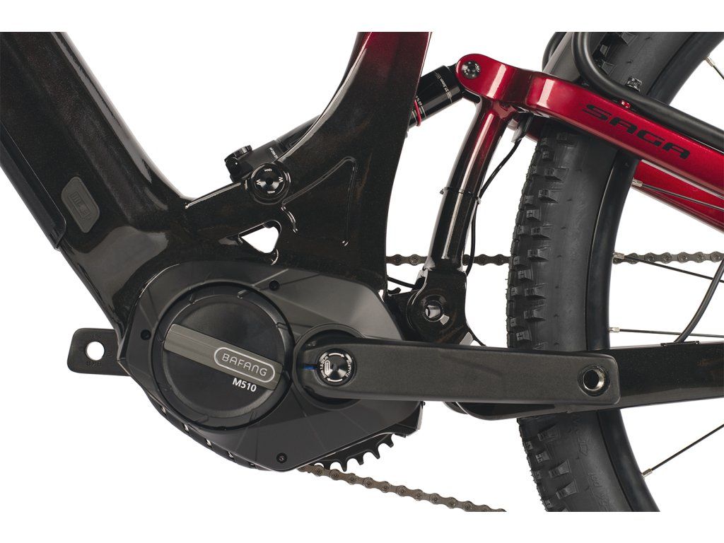 Rama z niskim przekrokiem umożliwia wygodne wsiadanie i zsiadanie niezależnie od wieku czy stroju. Geometria została zaprojektowana z myślą o stabilnej, wyprostowanej pozycji, która zapewnia komfort na każdej trasie. Konstrukcja tylnego trójkąta z amortyzatorem prowadzonym w osi pracy zawieszenia przez rurę podsiodłową gwarantuje maksymalnie efektywne tłumienie nierówności przy zachowaniu eleganckiej i funkcjonalnej formy ramy. - Wydajny centralny silnik Bafang M510 o momencie obrotowym do 110 Nm