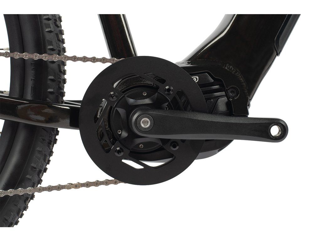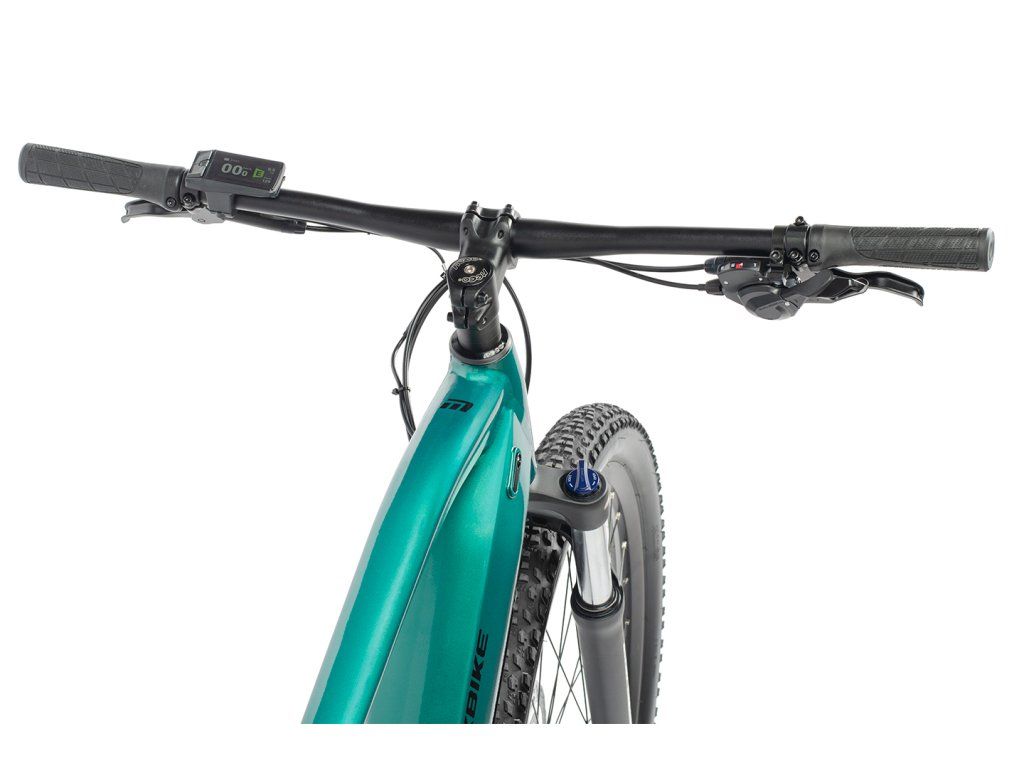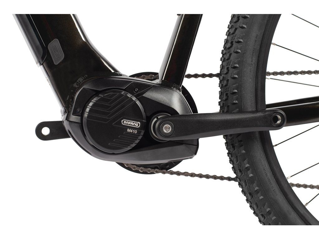 1x9 hardtail 29" górski rower elektryczny z silnikiem Bafang M410 (250 W, 90 Nm), baterią 720 Wh, 20 Ah, amortyzowanym widelcem Suntour XCM HLO 29” o skoku 100 mm, manetką Shimano CUES SL-U4010 1x9, przerzutką Shimano CUES RD-U4000 oraz hamulcami ZOOM HB-875 z tarczami 180 mm.
