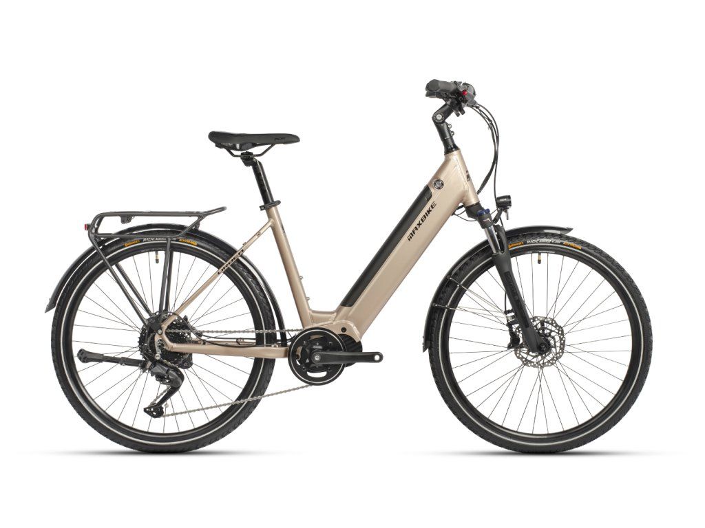 MAXBIKE Urbea 26 – komfortowy rower elektryczny do codziennej mobilności. Niska rama, nowa bateria 630 Wh oraz zwrotne koła 26" tworzą idealne połączenie do miejskich dojazdów, zakupów i spokojnych przejażdżek poza ruchliwymi ulicami.