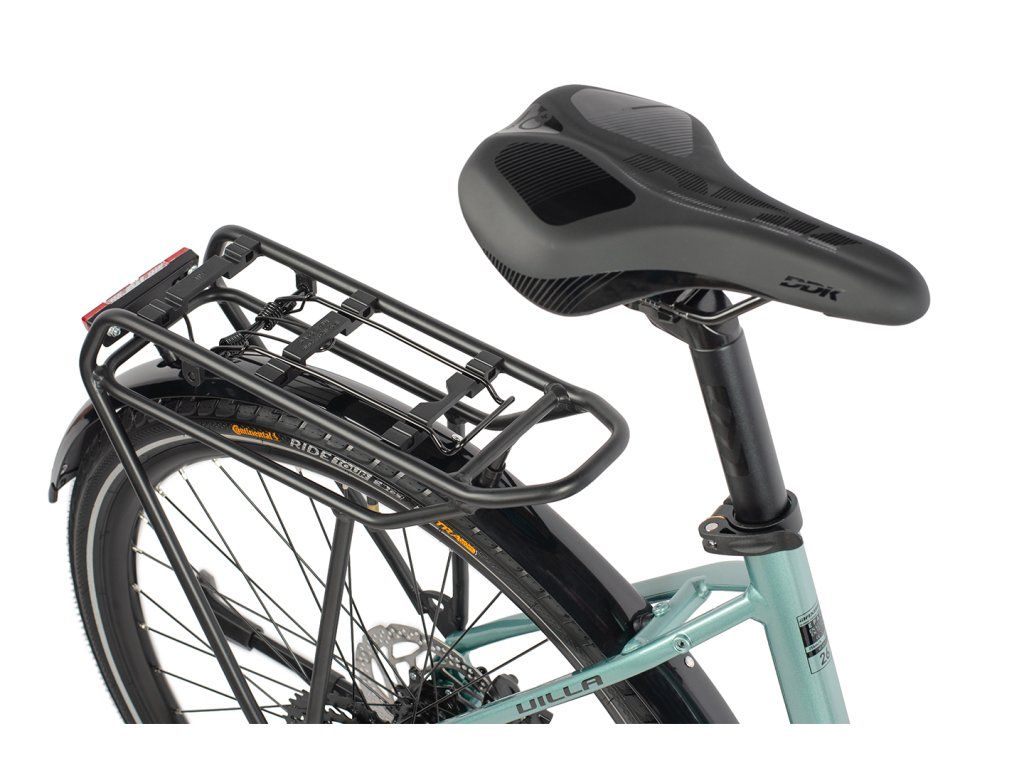 Model Villa został znacząco udoskonalony pod względem wyposażenia. Trwalsze błotniki skuteczniej chronią przed zabrudzeniami, a przednie i tylne oświetlenie zasilane bezpośrednio z baterii roweru zwiększa bezpieczeństwo bez potrzeby dodatkowego ładowania. Tylny bagażnik z systemem MIK umożliwia szybkie mocowanie sakw, koszyków lub innych akcesoriów, a stabilna podpórka ułatwia parkowanie. - Ergonomia nastawiona na komfort